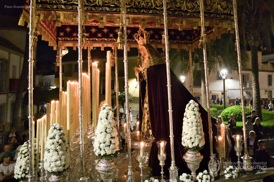 Junto a Él, envuelta en silencio y dolor, camina Ntra. Sra. de las Lágrimas, Madre que recoge en su corazón las angustias del mundo y las ofrece al Padre. Su mirada compasiva y sus lágrimas contenidas nos enseñan el verdadero sentido del amor y del sacrificio.